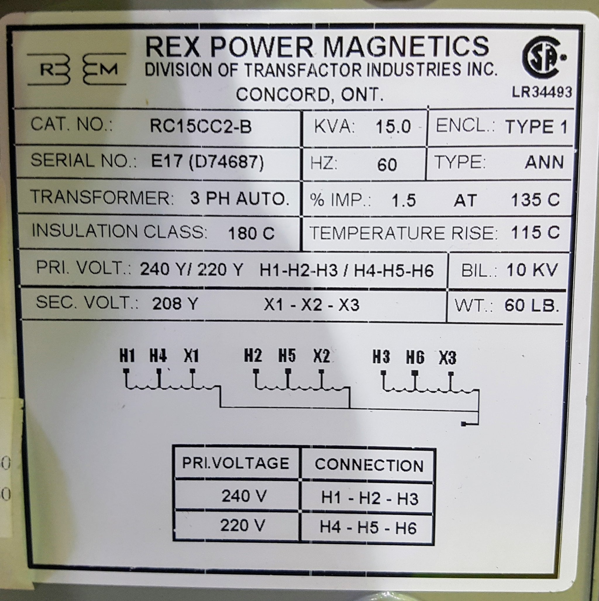 Rex Auto Transformer - 240/220/208v - 3 ph - 15KVA