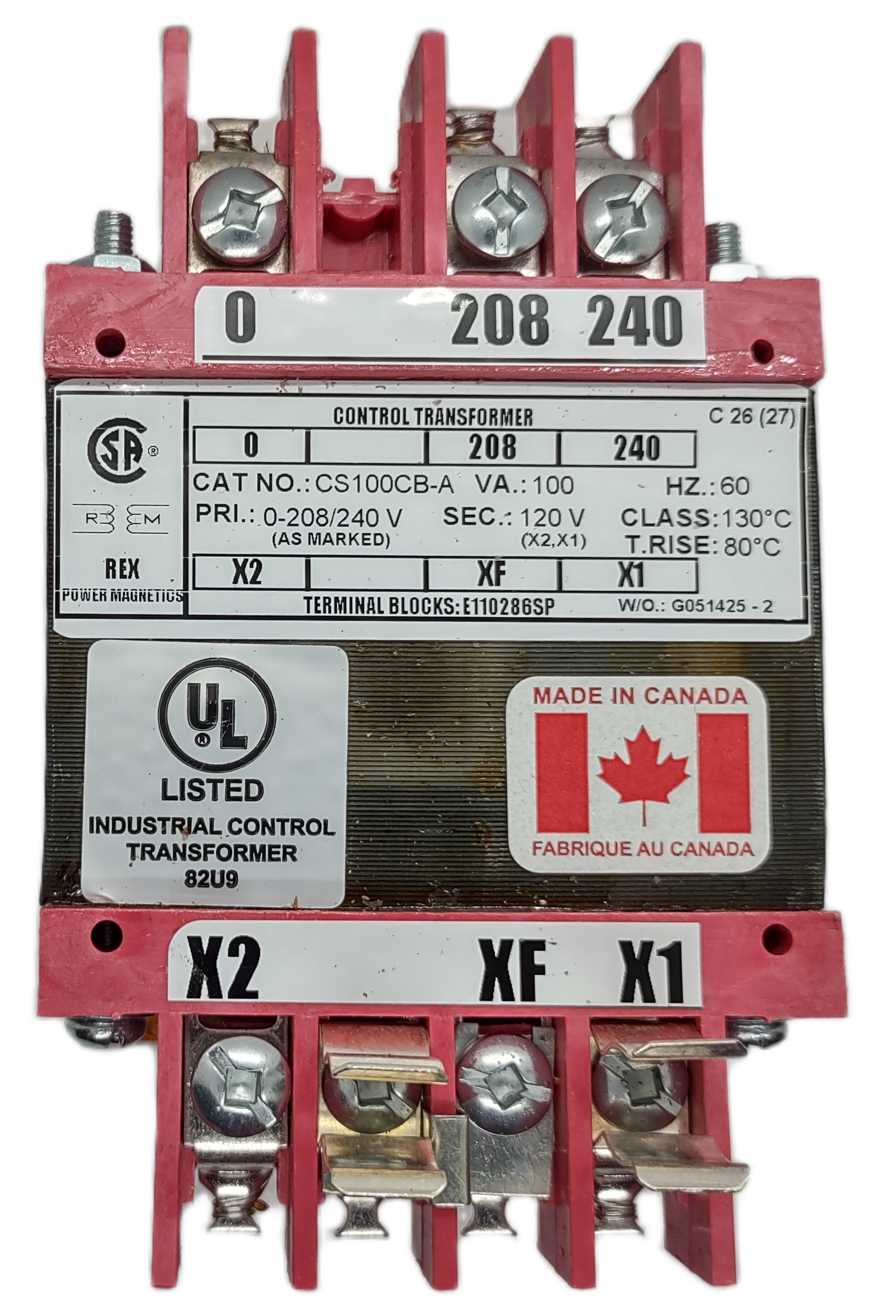 Rex Control Transformer - 100VA, 240/208V-120v